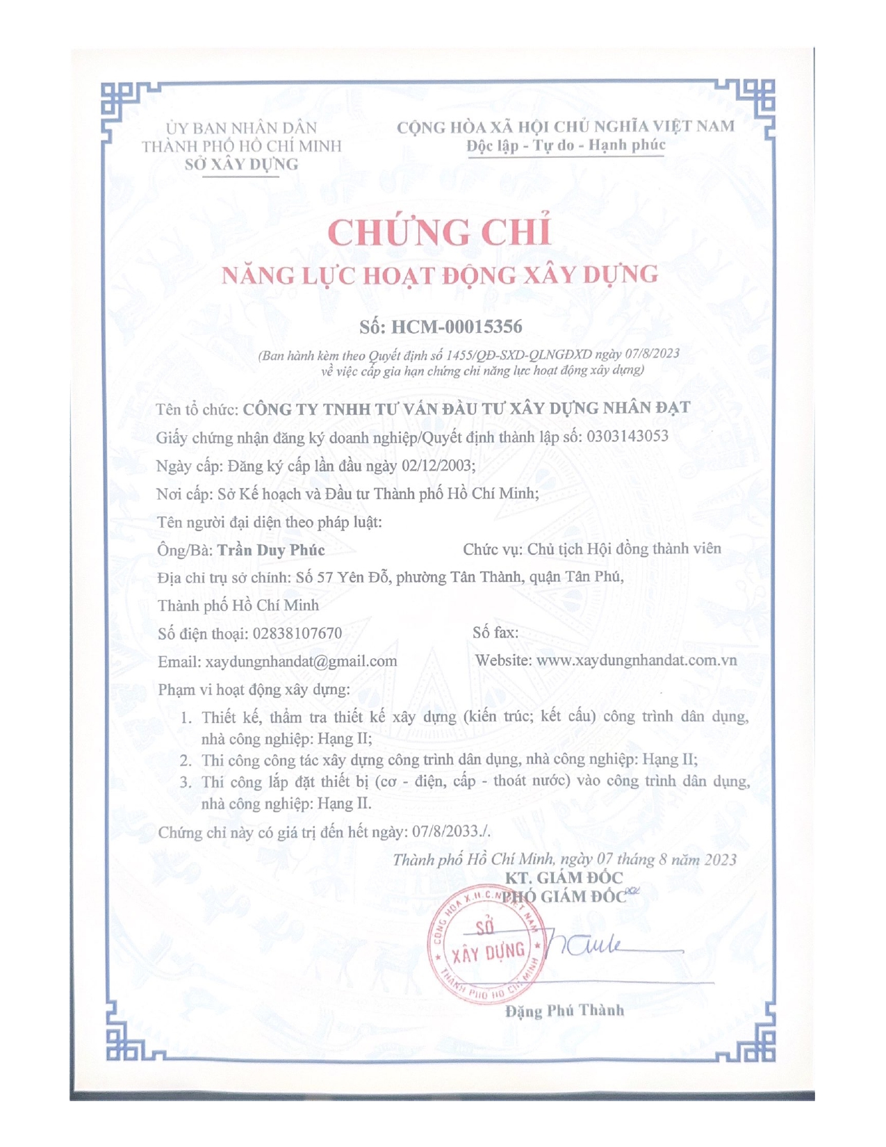 Chào mừng bạn đến với Công ty Xây Dựng Nhân Đạt
